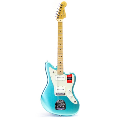 Originally intended for sophisticated jazz guitarists, the Jazzmaster was quickly embraced by musicians attracted to its left-of-center looks and fat sound. A direct descendent of the guitar that powered underground music from the late-‘60s to today, the American Professional Jazzmaster is ready to lend its unique sound to your playing. FEATURES Two Michael Frank-designed single-coil Jazzmaster pickups Jazzmaster tremolo bridge with brass Mustang saddles and screw-in arm New modern “Deep C”-shaped neck profile Bone nut; 22 narrow-tall frets for easier bending Treble bleed circuit maintains highs when reducing volume Includes Elite Molded hardshell case